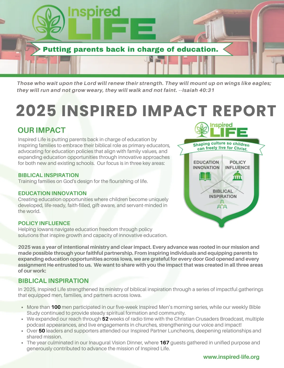 Inspired Life is an organization working to help men and women, marriages, parents, children, leaders, educators, givers, and business owners live truly God inspired lives. Through retreats, speaking engagements, workshops, and resources, we work to inspire and educate individuals in what it takes to live in the power of God's spirit!